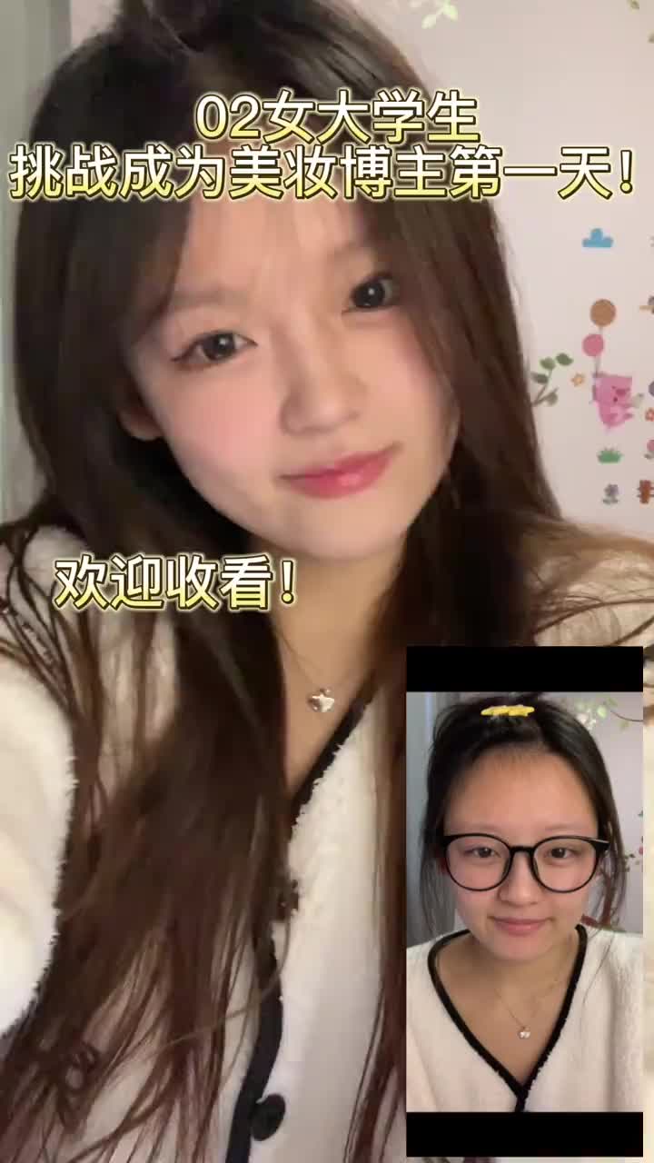 女大学生挑战成为美妆博主第一天~