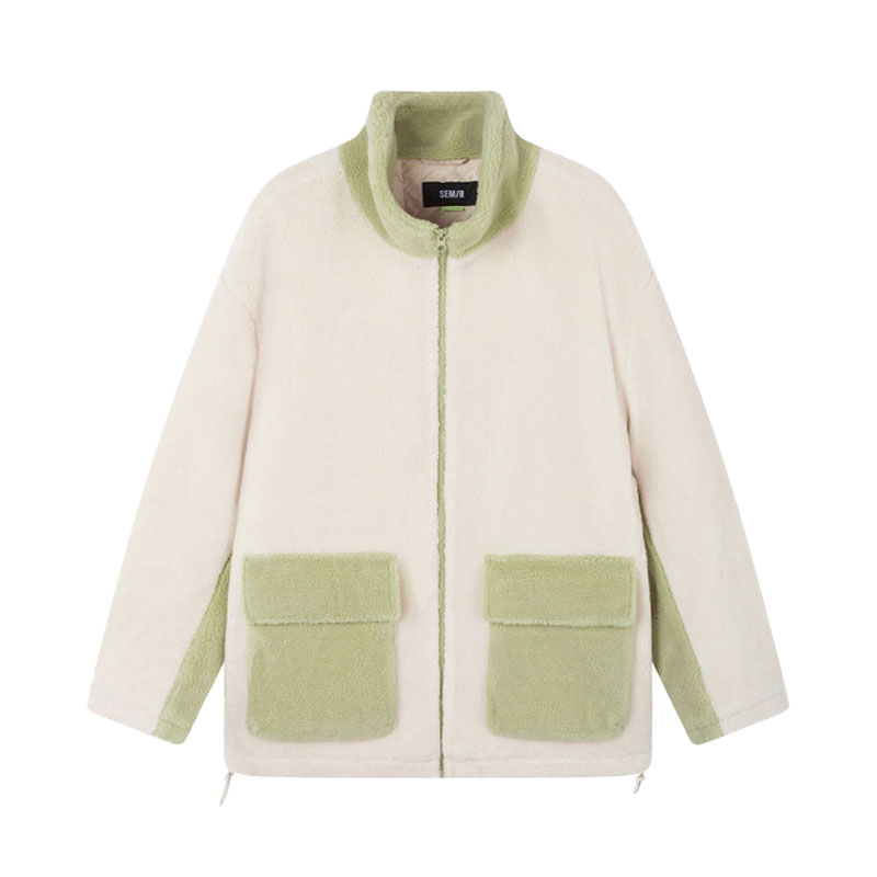森马仿羊羔绒拼接撞色夹克